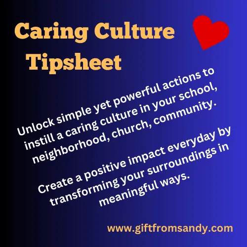 Unlock simple yet powerful actions to instill a caring culture in your school, neighborhood, church, and/or community. Create a positive impact everyday by transforming your surroundings in meaningful ways.